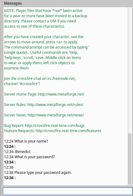 - confirm names can not start with special characters or numbers) NOTE: once in game, you can give yourself or adjust the default title of your character using the title command (