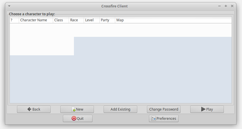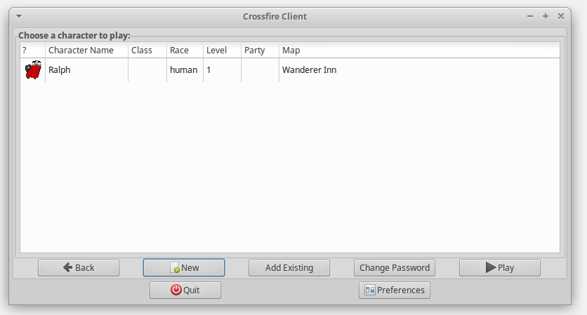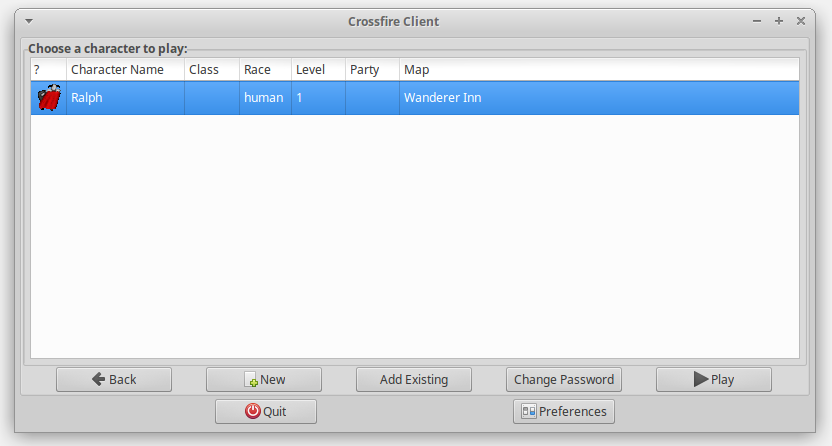 2. You will now see all your available characters, left click on one of them to select them (they are now highlighted in some color depending on your desktop theme and other settings) and then click on the Play button
