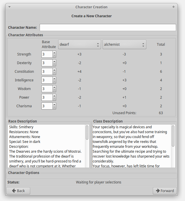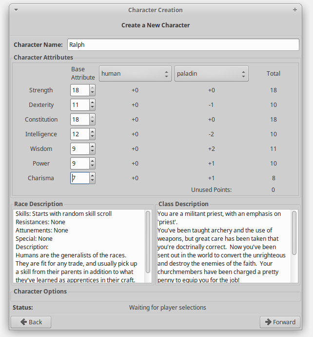 8. While still in the Create a New Character interface and in the Character Attributes section, perform the following steps: