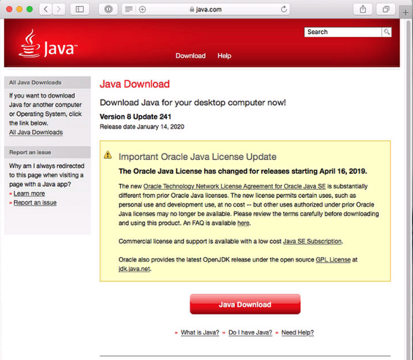 1. Visit the Java download page at https://java.com/en/download/faq/java_mac.xml and select “Download latest Java”