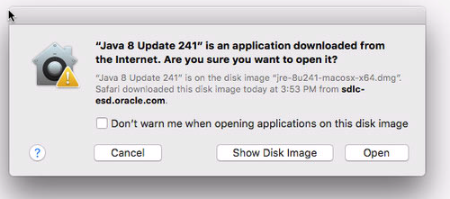 3. If prompted about downloading the application from the Internet and asking if you want to open it, click on the Open button