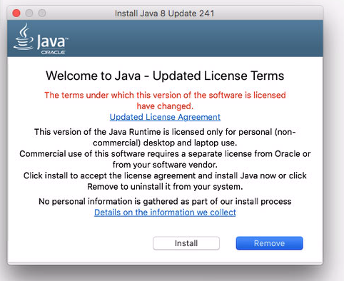 5. The next screen should show the Updated License Terms for Java, if you agree to them then click on the Install button