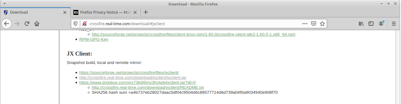 1. Launch a web browser and visit the JX Client web page and download the .jar file from one of the listed mirrors
