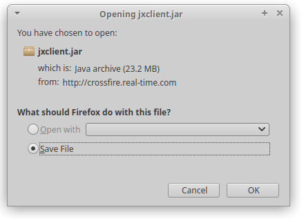 2. When prompted on saving or opening the jxclient.jar file, click on the Save File button
