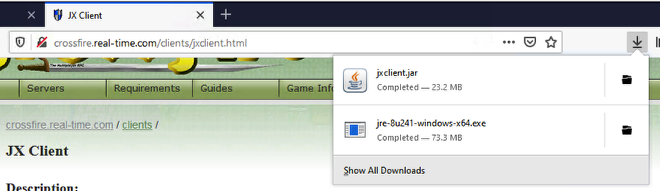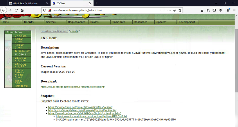 1. Visit the JX Client web page and download the .jar file from one of the listed mirrors