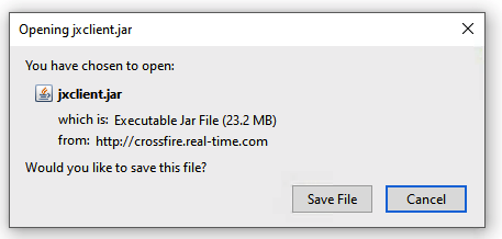 2. When prompted on opening the jxclient.jar file, click on the Save File button